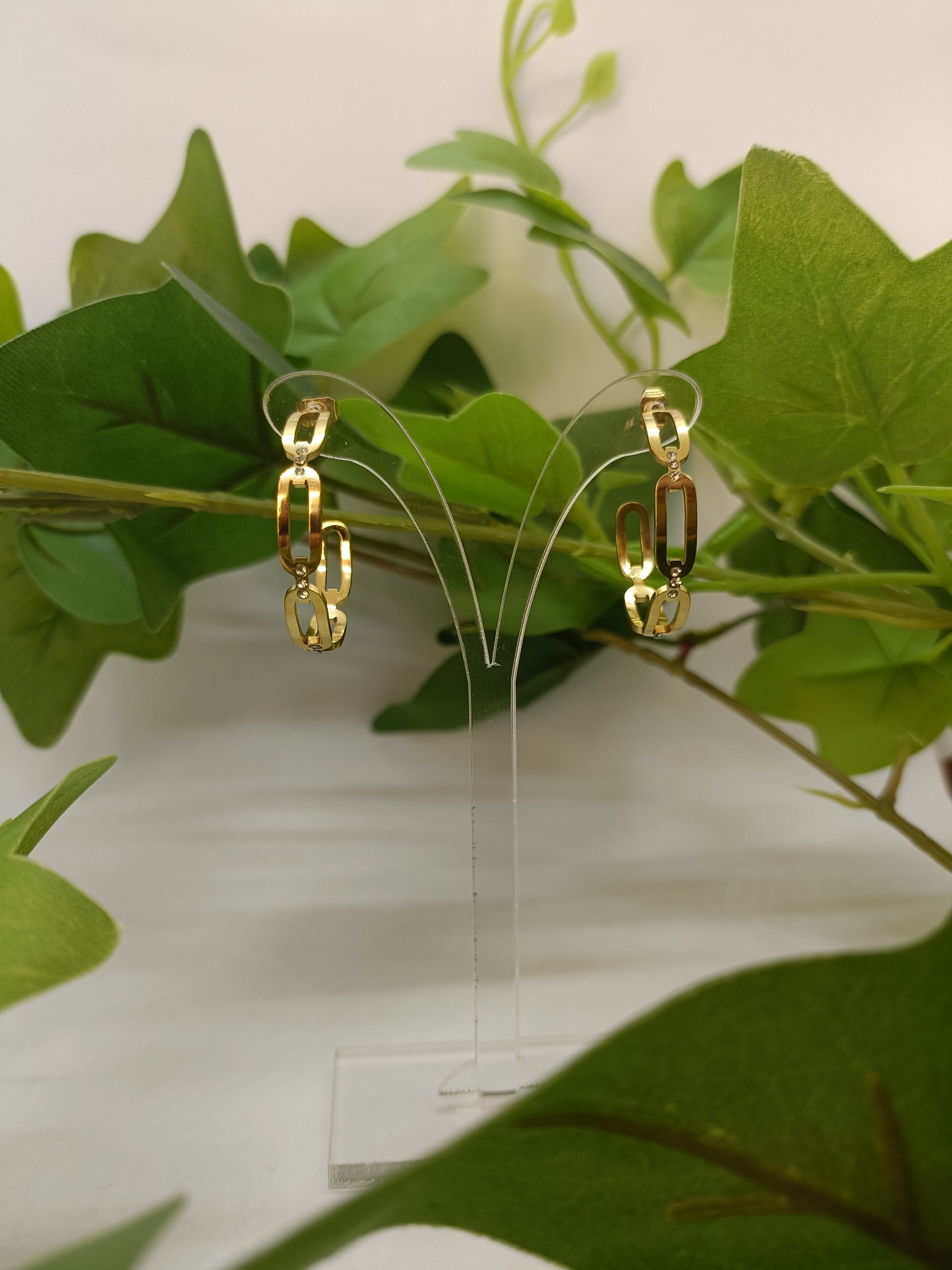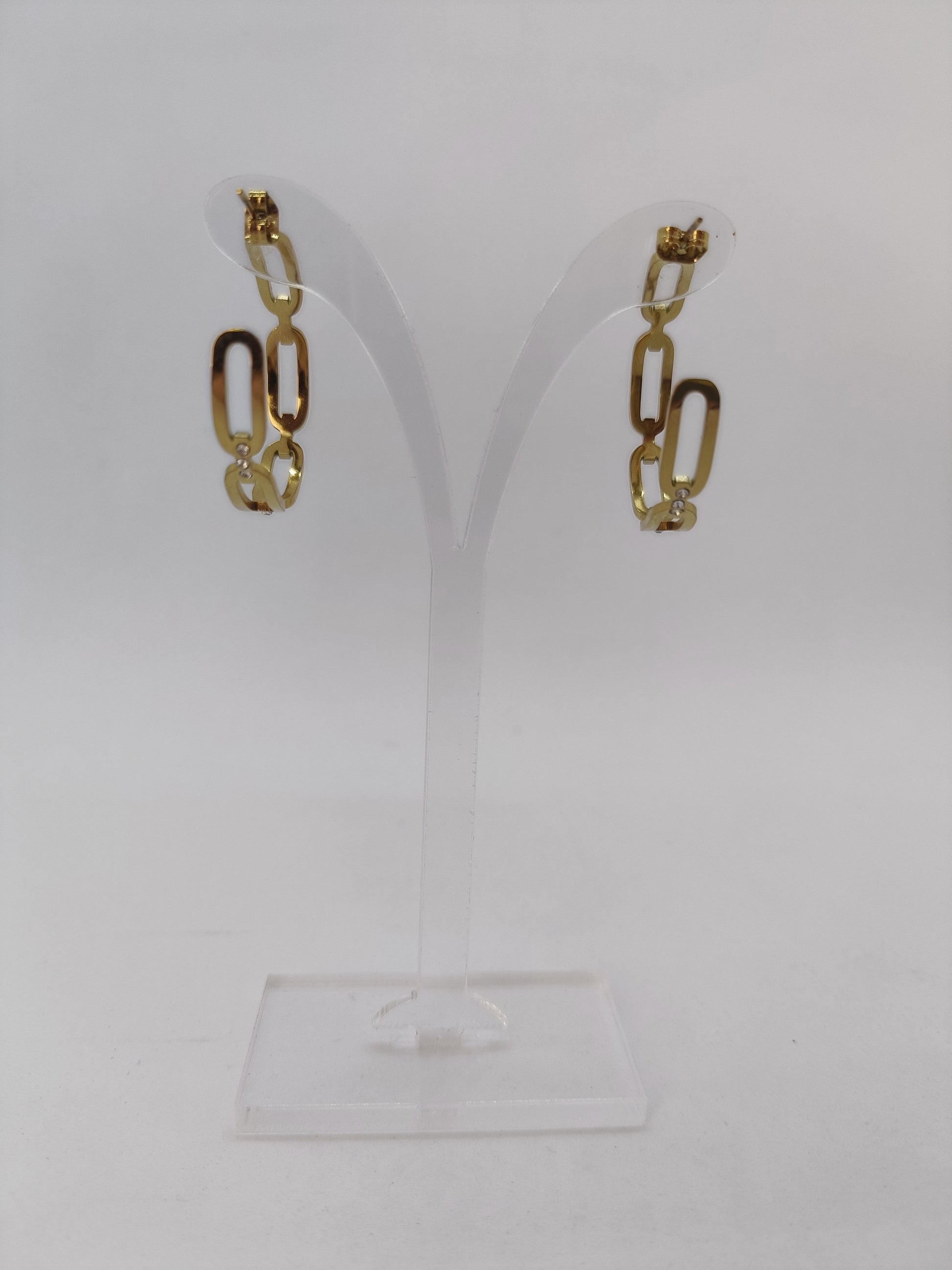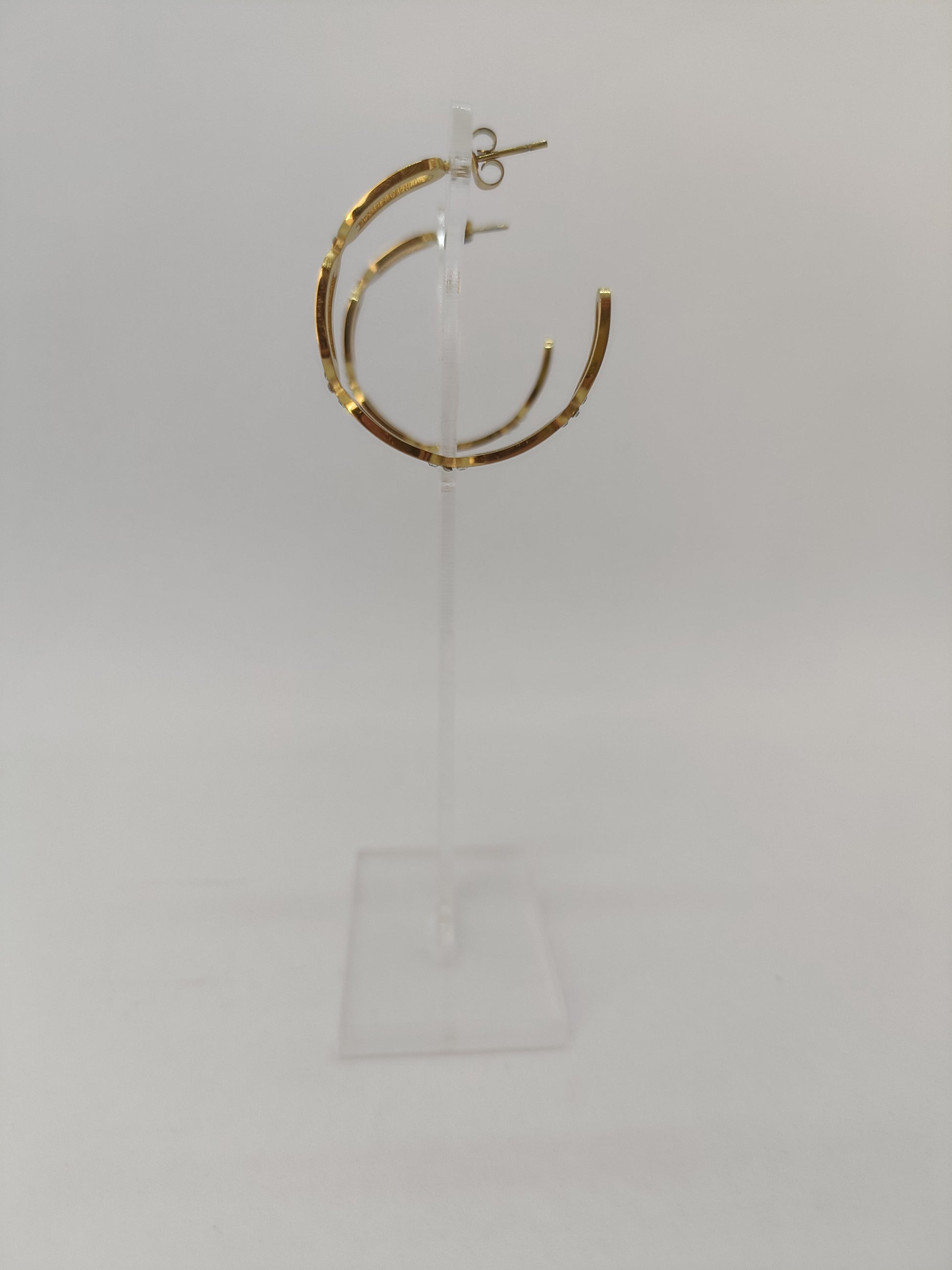 Créoles ouvertes avec clou d'oreilles en acier inoxydable doré et strass reliant chaque "anneau". Effet garanti sans excès.